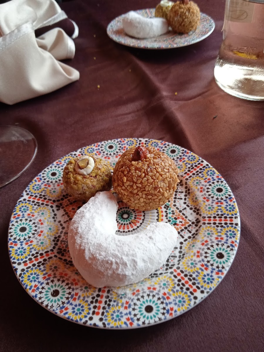 We had a chicken tagine and a grillade with spicy sausage beef and lamb. Perfectly spiced and absolutely delicious. Good Moroccan wine too.